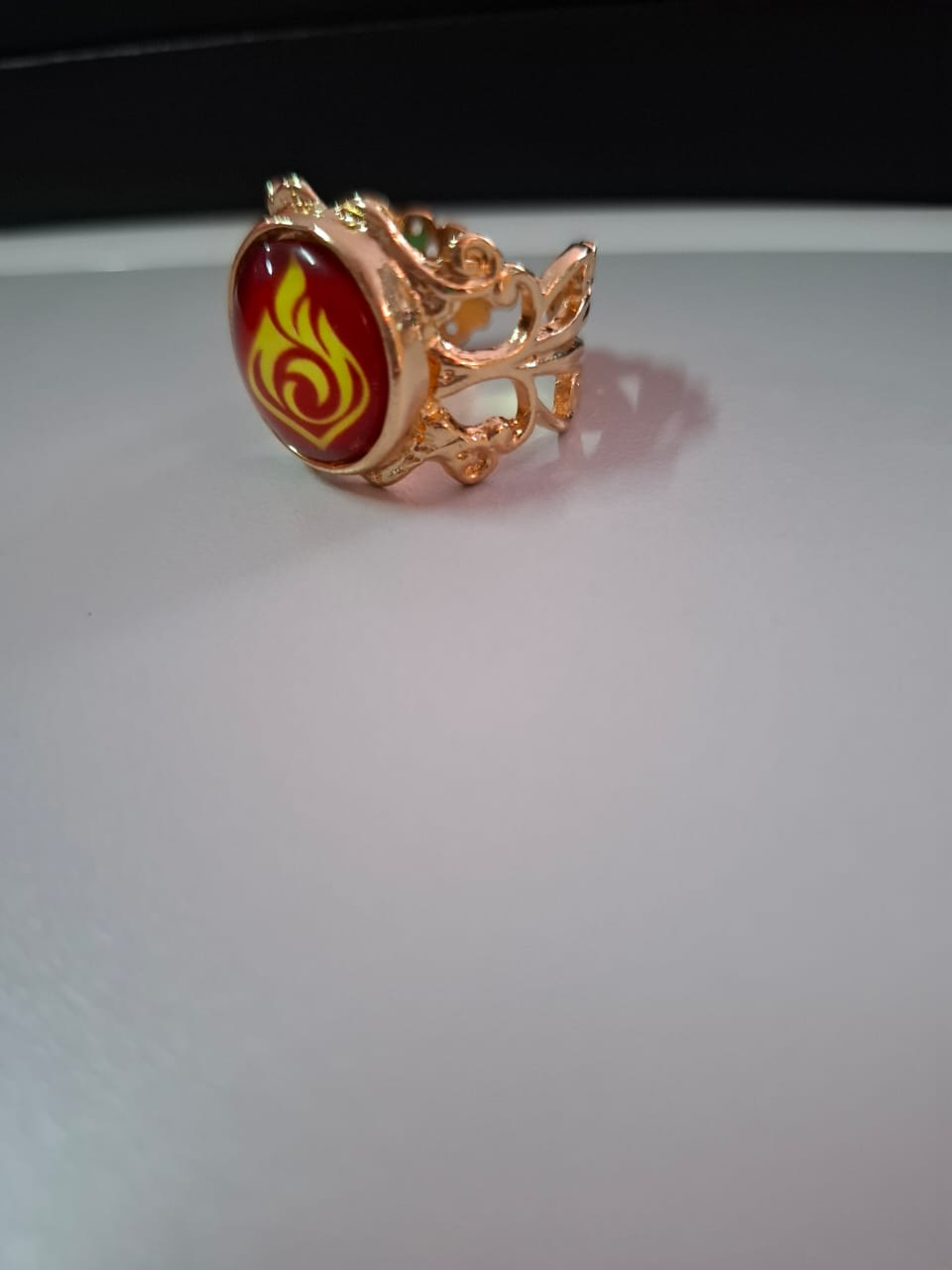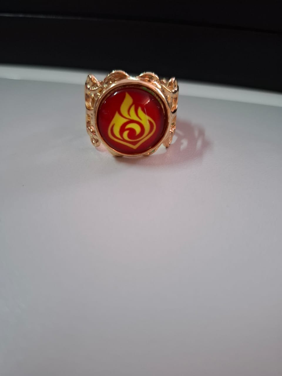 Anillo ajustable y luminoso en la oscuridad del Elemento Pyro del videojuego Genshin Impact.