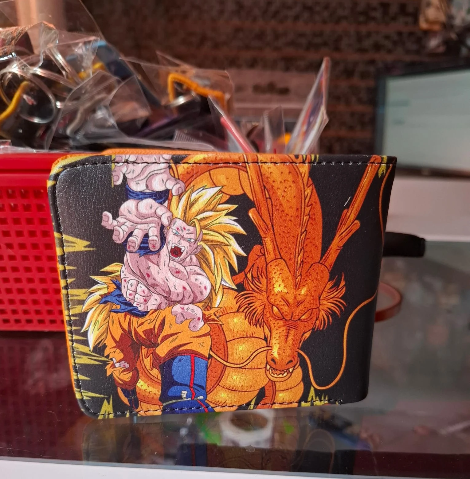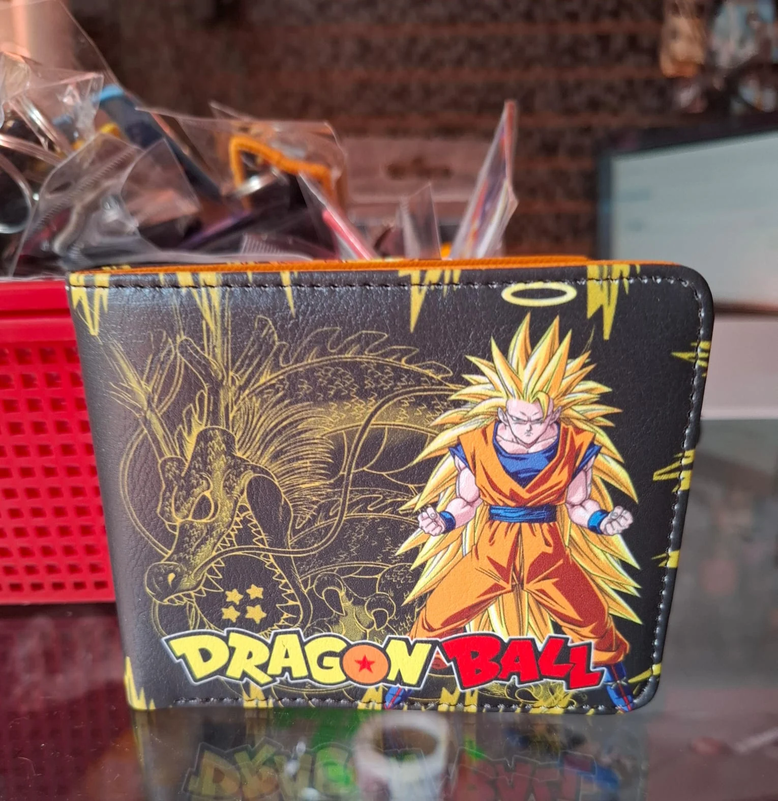 Billetera de Dragon Ball con el personaje Goku en Super Saiyajin 3, tiene espacio para billetes, identificaciones, tarjetas y monedas.