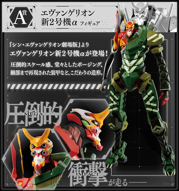 Figura de acción de la linea Ichibansho de Bandai conocida por sus figuras detalladas, es también una figura MEGAIMPACT y esta se basa en el diseño de la Unidad-02 del anime Neon Genesis Evangelion la figura incluye una base de plástico transparente y cuenta con su armadura blindada verde muy detallada es perfecta para los coleccionistas o quien ame Evangelion.