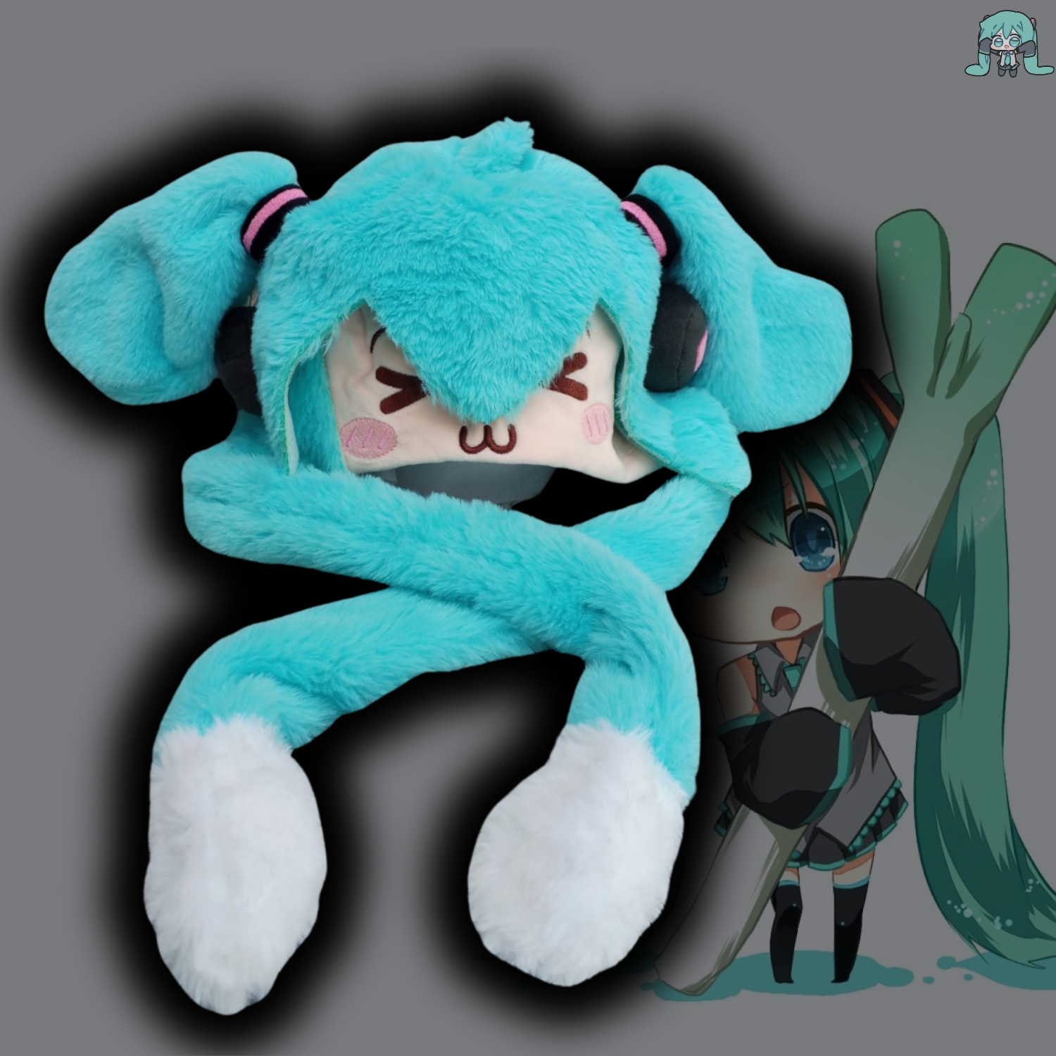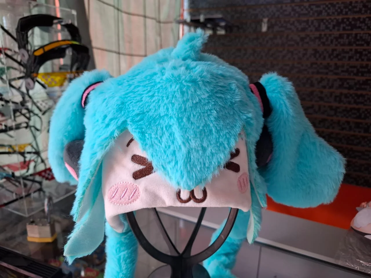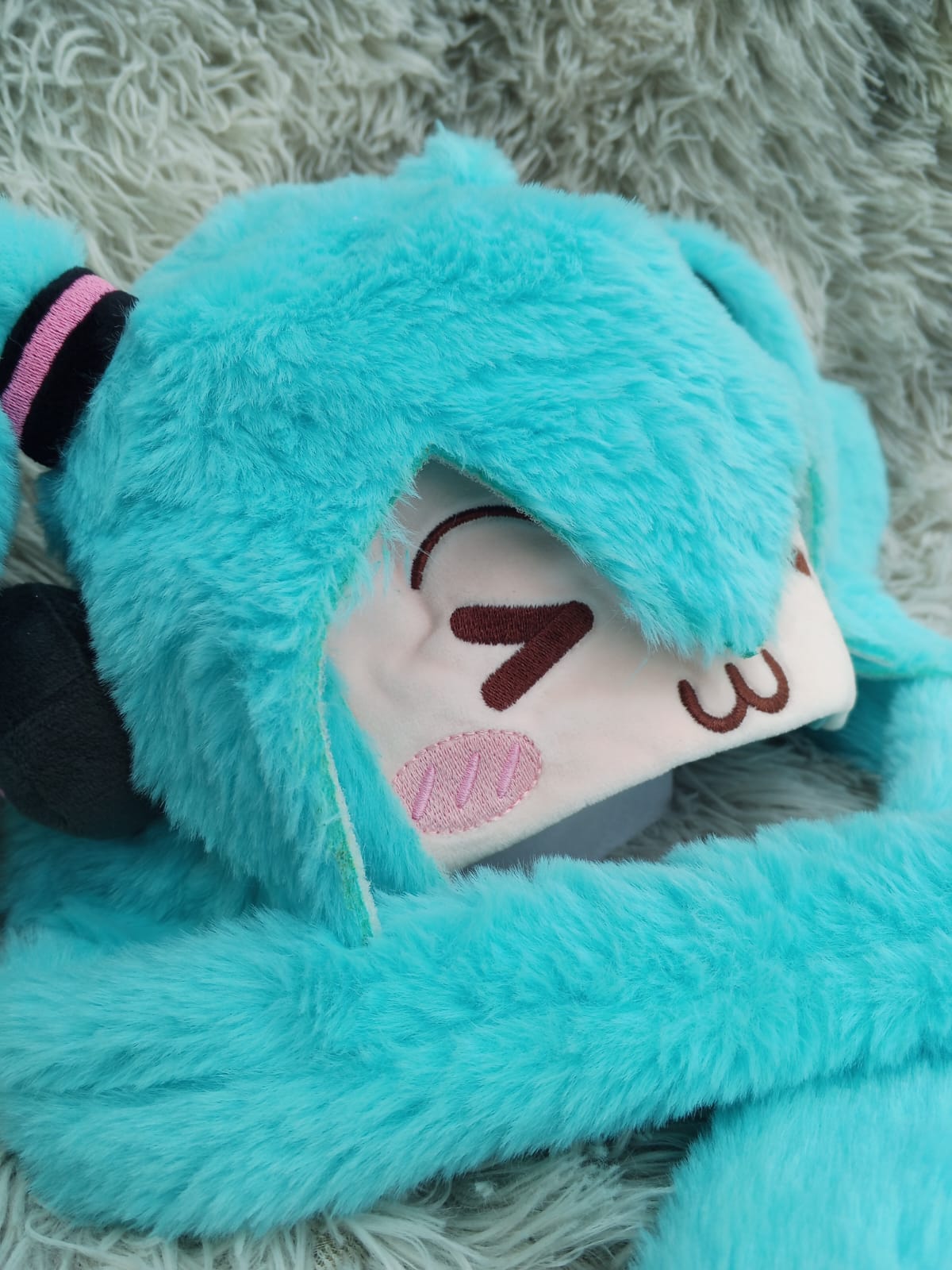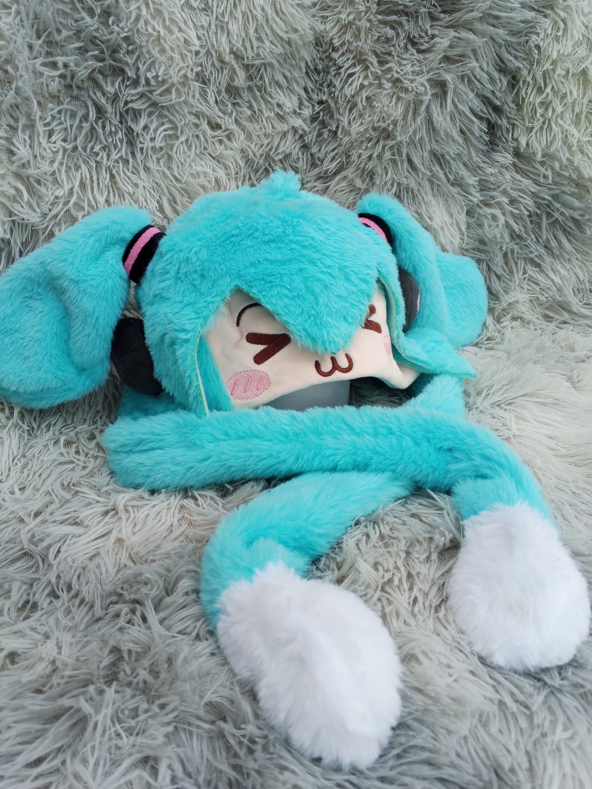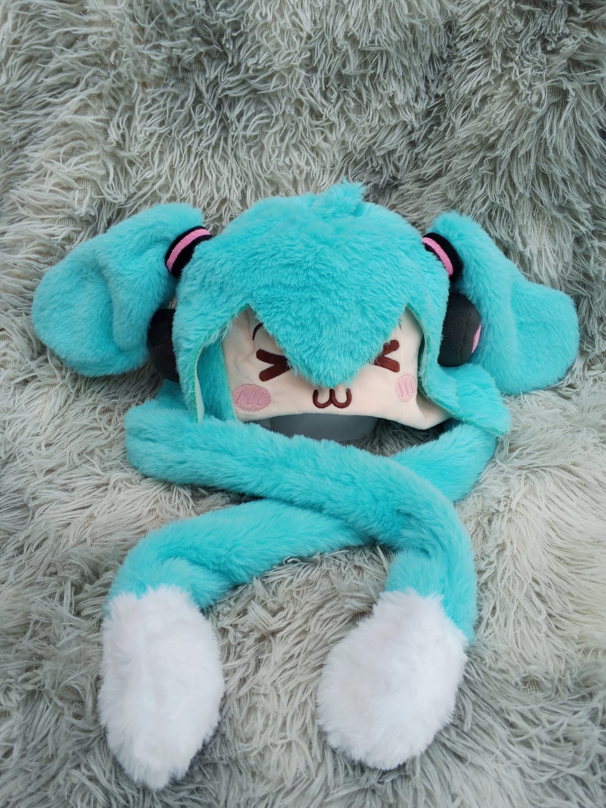 Gorro de felpa de Miku con orejas que se mueven al presionarlas.