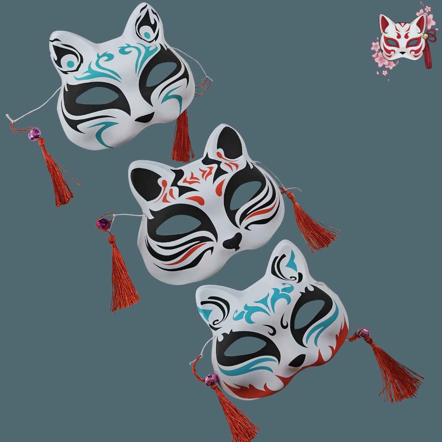 Máscaras de zorro con cascabeles, un complemento perfecto para un Cosplay o para fiestas de mascaras y disfraces.