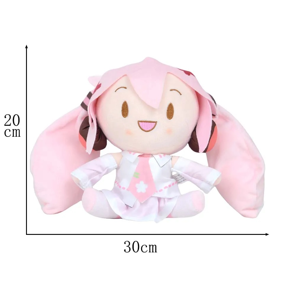 Peluche inspirado en la Idol Hatsune Miku, en su version Sakura Miku, asemejando los petalos del iconico y hermoso arbol con sus tonalidades rosa