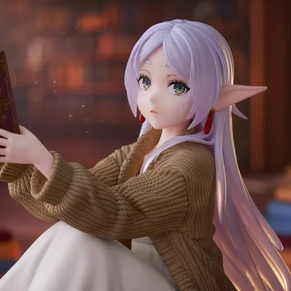 La milenaria elfa amante de los grimorios disfrutando uno en la comodidad de su bata, la Maga Frieren!